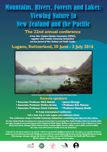 30/6 – 3/7/16 Mountains, Rivers, Forest and Lakes: Viewing Nature in New Zealand and the Pacific, held at Franklin University, Lugano, Switzerland