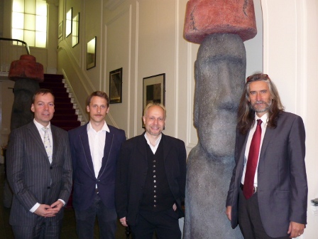 - 2010. As curator for the Easter Island exhibition at Canning House, London. At the opening night reception with (from left to right) Cristian León, Cultural Attaché for Chile to the UK, Martyn Harris, and Roy Smith.